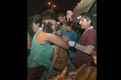 Según la organización Defensa de la Vida Animal, se rescataron más de 200 canes que perdieron a sus familias o se extraviaron tras el terremoto. También en la emergencia se socorrieron a otros animales, como gatos e inclusive un pato.