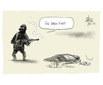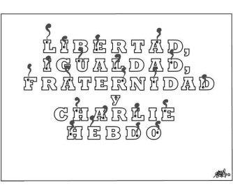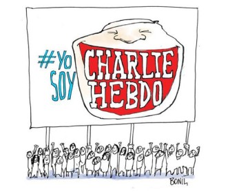 Las viñetas muestran tristeza y rabia por el ataque contra el semanario francés que dejó doce muertos, entre ellos el director Stéphane Charbonnier Charb y los conocidos dibujantes Cabu, Tignous