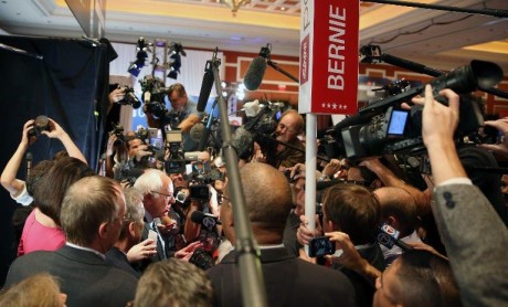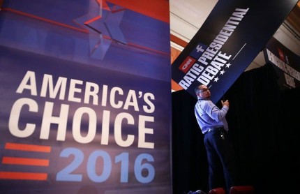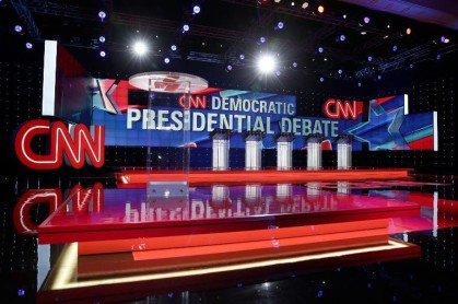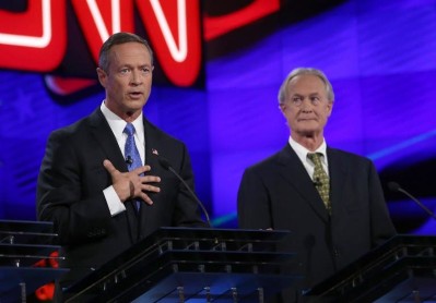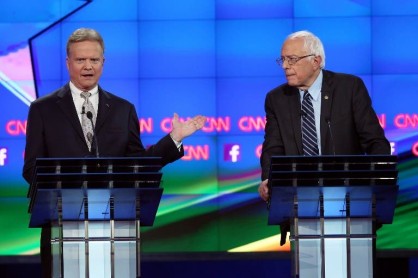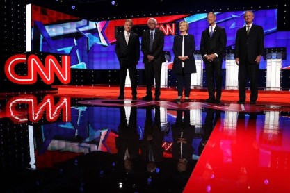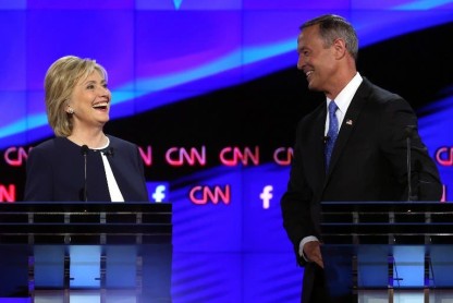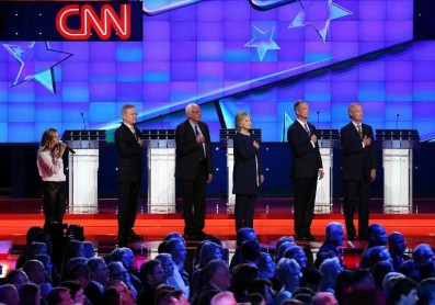 Los cinco participantes por la presidencia de EE.UU.: Hillary Clinton, Martin O’Malley, Lincoln Chafee, Bernie Sanders y Jim Webb participaron en el debate presidencial patrocinado por CNN y Facebook en el Wynn Las Vegas el 13 de octubre, 2015, en Las Vegas, Nevada.