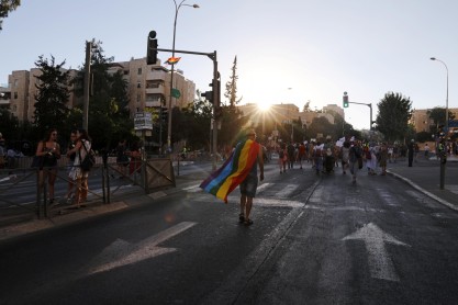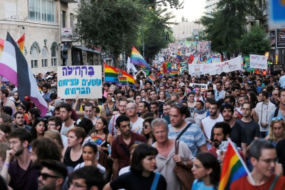 Los participantes marchan en el desfile número 16 del orgullo gay en Jerusalén