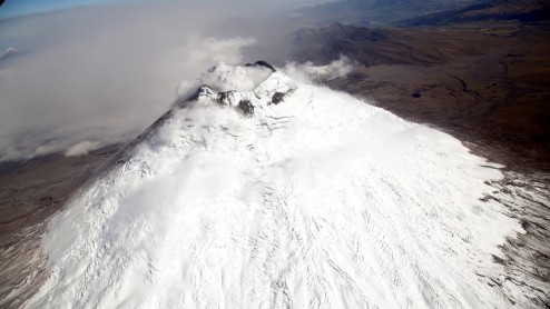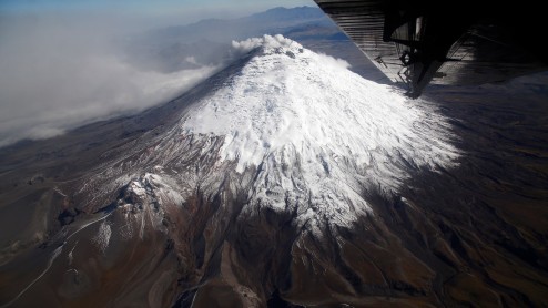 El Ministerio Coordinador de Seguridad, junto con técnicos del Instituto Geofísico, realizó un sobrevuelo este 18 de agosto para diagnosticar la situación del volcán Cotopaxi.