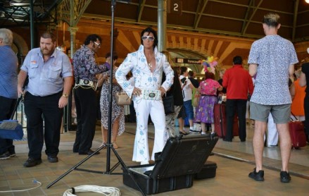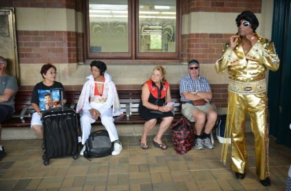 "Es un acontecimiento único si te gusta Elvis", explicó Johnny Angel, un doble de Elvis. Cerca de él, un escenario erigido en el hall central de la estación permite al resto de los viajeros olvidar que van al trabajo escuchando los "Love me tender" o "It's now or never" de los imitadores del rey del rock and roll que esperan el "Elvis Express" de las 09H20 para Parkes.