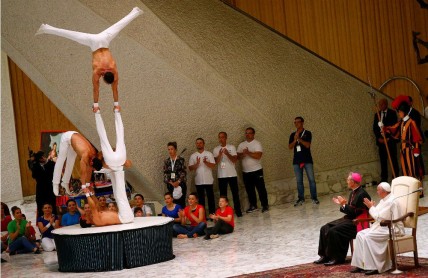 Roma.- El papa Francisco recibió esta semana a mil artistas del mundo del circo procedentes de varios países, a quienes aplaudió varios números. "Ustedes son artesanos de la fiesta, de la maravilla, de lo bello: con estas cualidades enriquecen la sociedad de todo el mundo", alimentado "sentimientos de esperanza y de confianza", declaró.