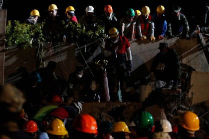 La esperanza llevó a miles de profesionales y voluntarios a trabajar frenéticamente en docenas de inmuebles derribados en toda la capital mexicana y en estados próximos para buscar a sobrevivientes del terremoto de magnitud 7,1, que causó al menos