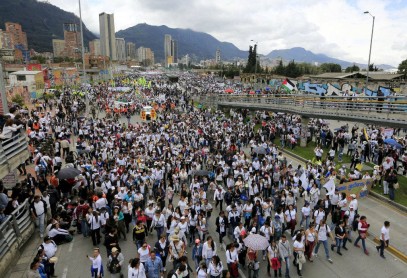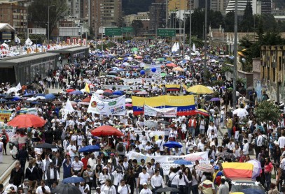 Miles de colombianos salieron este jueves a las calles en varias ciudades para expresar su deseo de que el conflicto armado acabe. Los organizadores mostraron su esperanza de lograr unos 300.000 participantes. Fotos: REUTERS