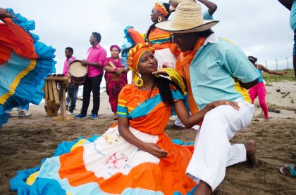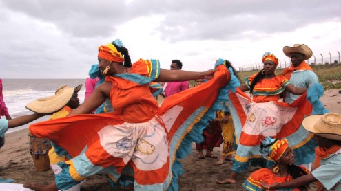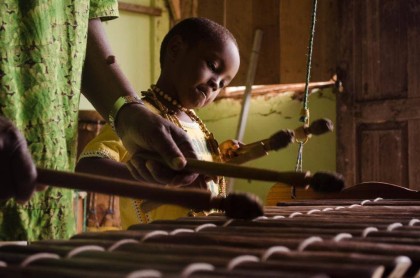 La música de marimba se toca con un xilófono de madera de palma, equipado con tubos resonadores de bambú, y se acompaña con sones de tambores y maracas.