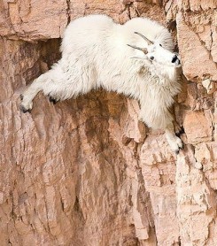 Huyendo de sus depredadores, las cabras de montaña (Oreamnos americanus) encuentran momentos de alivio en lugares inaccesibles. Capaces de saltar hasta 4 metros en un solo brinco, llegan a habitar lugares de más de 13 mil pies de altura.