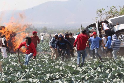 Los residentes destrozan un vehículo incautado por personal militar durante una protesta contra el ejército después de un incidente con presuntos ladrones de petróleo en la comunidad de El Palmarito