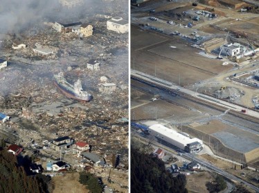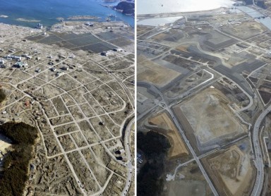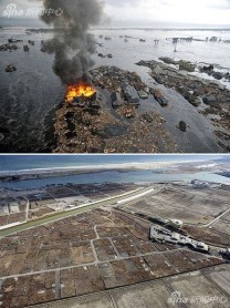 El 11 de marzo, 2011 el tsunami que devastó Japón, visto en una serie de fotos de “antes y después” que muestran el contraste y la transformación de la región. Fuente: Sina China