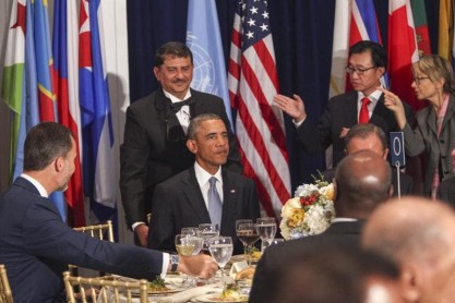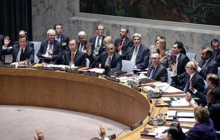 El presidente estadounidense, Barack Obama (d), vota en una reunión de alto nivel del Consejo de Seguridad de Naciones Unidas sobre terrorismo mundial durante la 69 Asamblea General de la ONU.