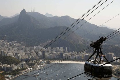 Diego Scofano sostiene la antorcha olímpica sobre el Bondinho del Pan de Azúcar el día de la inauguración de los Juegos Olímpicos en Río de Janeiro (Brasil). Foto: MARCELO SAYÃO