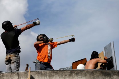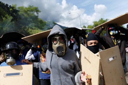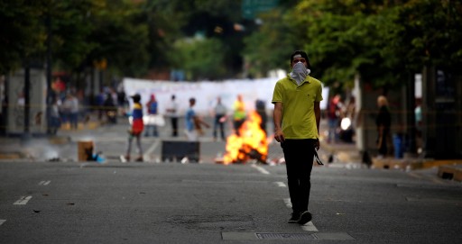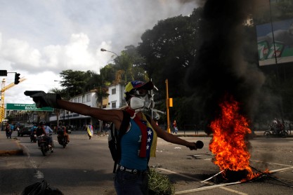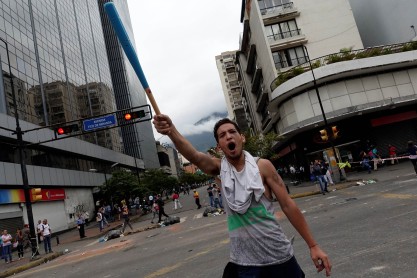Activistas de la oposición chocan con la policía durante una protesta contra el presidente venezolano Nicolas Maduro en Caracas. Venezuela el martes rozó desafiante a un lado la amenaza de sanciones económicas del presidente estadounidense Donald Trump, diciendo que va a seguir adelante con la elección de un controvertido cuerpo para reescribir la constitución del país. Una huelga nacional de 24 horas ha sido llamado para el jueves, el lanzamiento de lo que la oposición llama una "ofensiva final" para empujar Maduro fuera de la oficina.