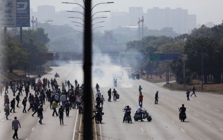 Disturbios estallaron este martes en las cercanías de la base aérea La Carlota, en Caracas, donde más temprano el líder opositor Juan Guaidó anunció que un grupo de militares se había sublevado contra el gobierno.