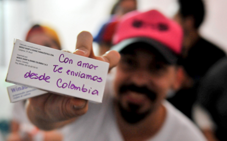 CRISIS DE MEDICAMENTOS. Cientos de personas reúnen en Bogotá remedios para enviar a Venezuela ante la escasez. (AFP)