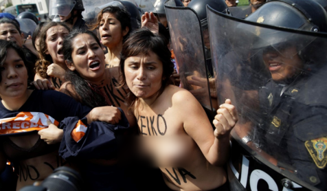 PERU. Manifestantes durante una protesta contra la candidata presidencial Keiko Fujimori frente al edificio del Congreso en Lima