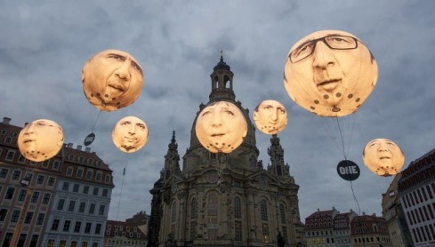 Policías de indonesia extinguen una efigie de la quema de un monje budista durante una protesta en apoyo de los musulmanes Rohingya de Myanmar por grupos musulmanes de línea dura frente Pembela Islam (FPI ) 2015 ADEK BERRY / AFP