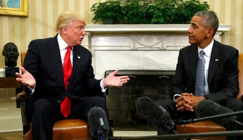 Barack Obama y Donald Trump se reunieron este 10 de noviembre de 2016 en la Casa Blanca, tras la victoria del magnate en las últimas elecciones presidenciales. Obama dijo que mantuvo una "excelente conversación" con Trump, mientras que el empresario afirmó querer trabajar con el presidente saliente.