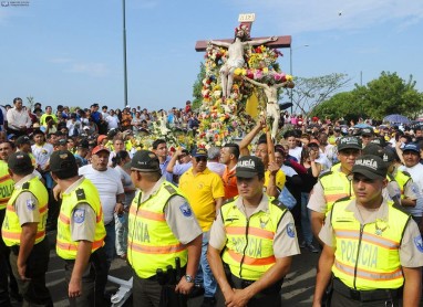 Luego de más de dos horas de un recorrido a lo largo de más de 31 cuadras en sectores del Suroeste de Guayaquil, la imagen del Cristo del Consuelo hizo su arribo a la zona conocida como El Cisne 2, donde a principios de mes se instaló una escultura de 15 metros de altura.