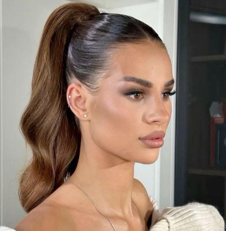 Luego lo podemos sellar con un poco de brillo, ‘shine spray’, o gotas de seda, para que al engrasar el pelo mantenga esa apariencia de que sigue mojado. Finalmente se agarra con ligas, que no son recomendables para el día a día, y se sujeta lo que haya quedado suelto con vinchas.