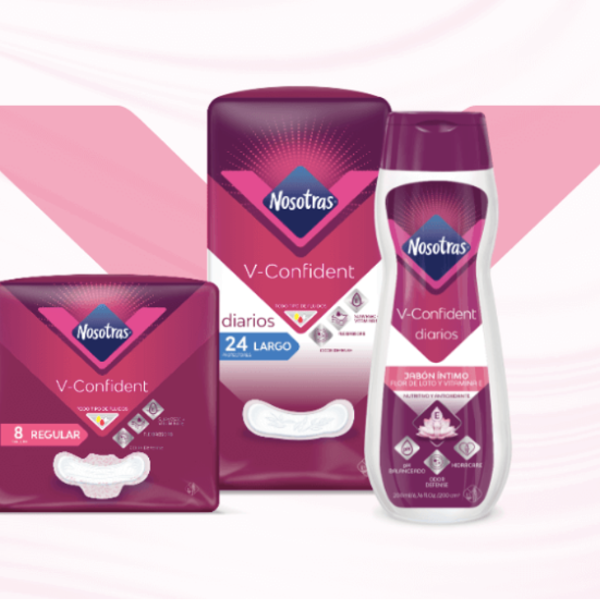 Esta nueva línea incluye toallas y diarios Nosotras V-Confident que cuentan con tecnología Odor Defense para controlar olores molestos; Flexiabsorb, tecnología ultra flexible que captura todos los flujos mencionados anteriormente; y, Suavesec + Vitamina E, para una cubierta extra suave y delicada con la piel, la cual la mantiene seca, sin irritación y con una agradable sensación de suavidad.