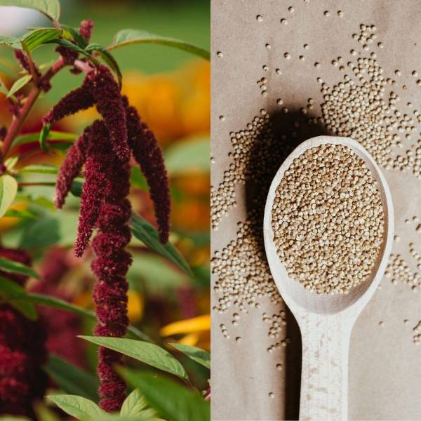 Las flores de ambas plantas son comestibles, las de la quinua sirven como condimento, y las de amaranto se emplean en bebidas tradicionales como la horchata. Ambas semillas son nutritivas, no contienen gluten y son de bajo índice glucémico.