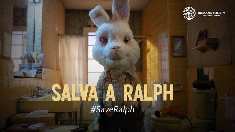 "Save Ralph" muestra un falso documental de cómo un conejo que es objeto de pruebas en un laboratorio para la belleza, describe su vida ante un equipo de filmación.