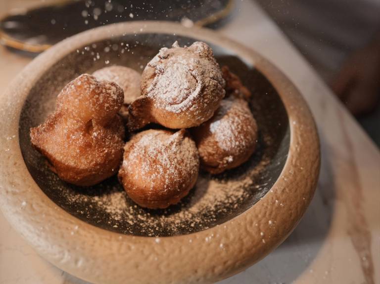 Ingredientes: 250 g de harina de trigo, 2 huevos, 25 g de azúcar, 25 g de polvo de hornear, 5 g de sal, 350 ml de leche, 5 ml de esencia de vainilla, y aceite para freír.