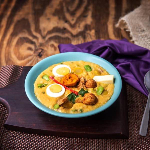 Esta sopa tradicional, espesa y llena de aroma, combina granos como fréjoles, lentejas y garbanzos, cocinados en una base cremosa de leche y caldo de pescado. Su sello distintivo es la incorporación de pescado seco, especialmente bacalao, junto a vegetales como zapallo, choclo y habas tiernas.
