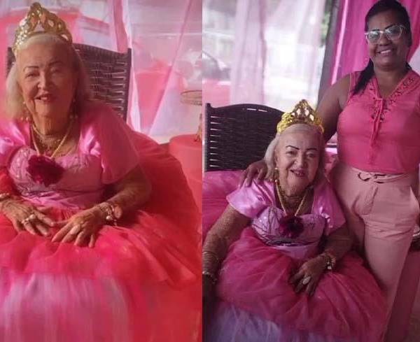 La abuelita lució un traje rosa digno de la realeza, una corona, y maquillaje acorde a los tonos de la fiesta. “Cuando nos dijo que nunca tuvo una fiesta de cumpleaños en su vida y que su sueño eran las princesas como temática, nos movilizamos con la ayuda de todos, ya que vivimos de donaciones para mantener el espacio”, dijo Flávia a So Noticias Boa.