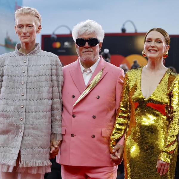 El estreno oficial también contó con la presencia del ministro de Cultura de España, Ernest Urtasun, que recibió a Almodóvar, Swinton y Moore a las puertas del Palacio del Cine, posando ante las cámaras después con ellos y con el director de la Mostra, Alberto Barbera.