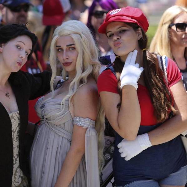 Enormes filas de fans vestidos como superhéroes o monstruos espaciales se armaron a las puertas del centro de convenciones de la ciudad, bajo el abrasador sol de la costa, para el mayor evento de la cultura pop.