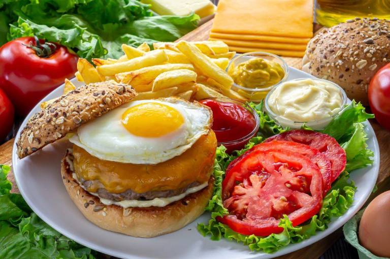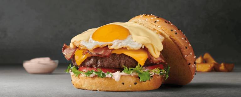 Hamburguesa con queso cremoso y huevo (cuatro porciones)