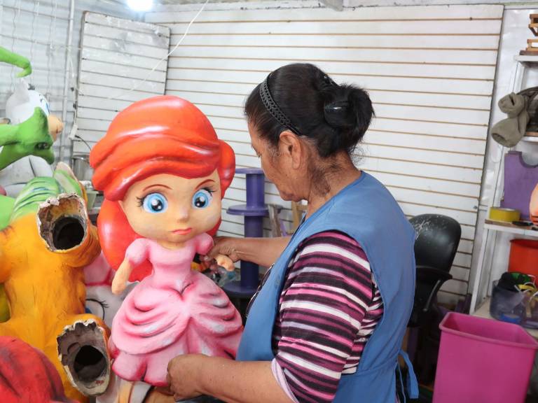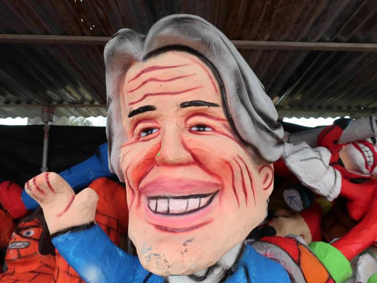 A sus 65 años, María no está sola en el oficio: a su lado sus hijos suben y bajan de escaleras colocando plásticos y techos en el quiosco, donde también se exhiben pequeños monigotes rellenos de papel y con caretas de políticos o de seres anónimos.