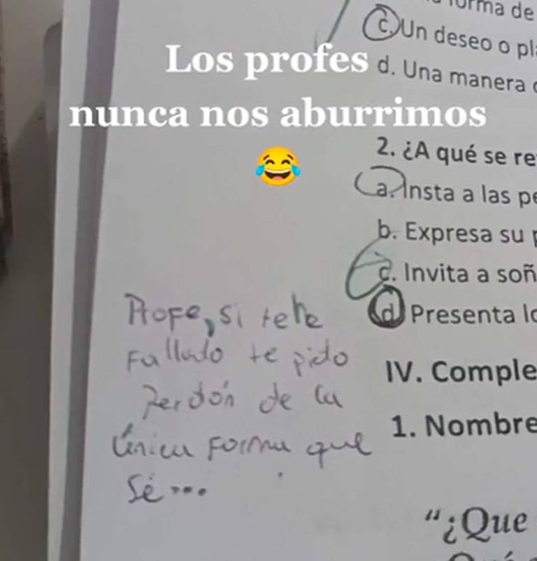 “Los profes nunca nos aburrimos”, se lee en la descripción del video junto a varios emojis que son la prueba de que tomó la situación con humor, sin embargo, se desconoce si el maestro decidió hacer válida la respuesta de su estudiante.