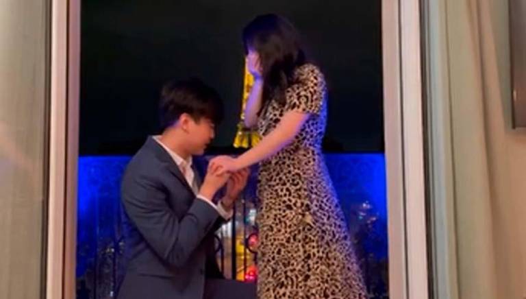 El momento quedó captado en un corto clip que no tardó en volverse viral luego ser publicado en Tik Tok. En este es posible apreciar a la pareja de enamorados en un balcón que contaba con vista directa hacia la Torre Eiffel.