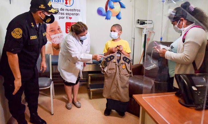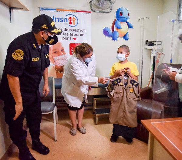 “El Comandante General de la PNP, César Cervantes, hizo realidad el sueño de nuestro pequeño Gonzalo, quien se convirtió en capitán de la PNP por un día. Emocionado participó de una ceremonia simbólica de saludo a la bandera de guerra, cantó el Himno Nacional“, informó el hospital en su cuenta de Facebook.