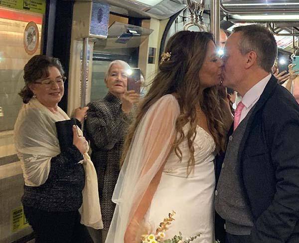 Pareja de recién casados decidió llegar a la fiesta de su boda en metro
