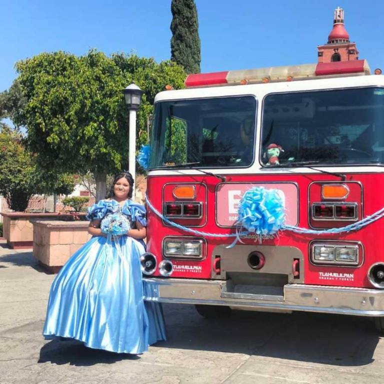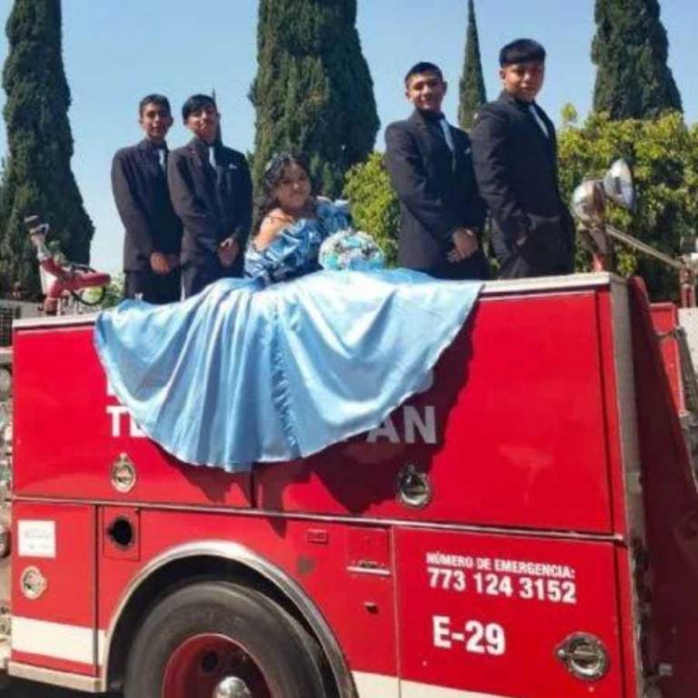 Las imágenes fueron compartidas por el municipio de Tlahuelilpan, ciudad en la que Michelle reside con su familia. En estas, el camión de bomberos aparece decorado con dos moños y cintas del mismo color del vestido de la quinceañera.