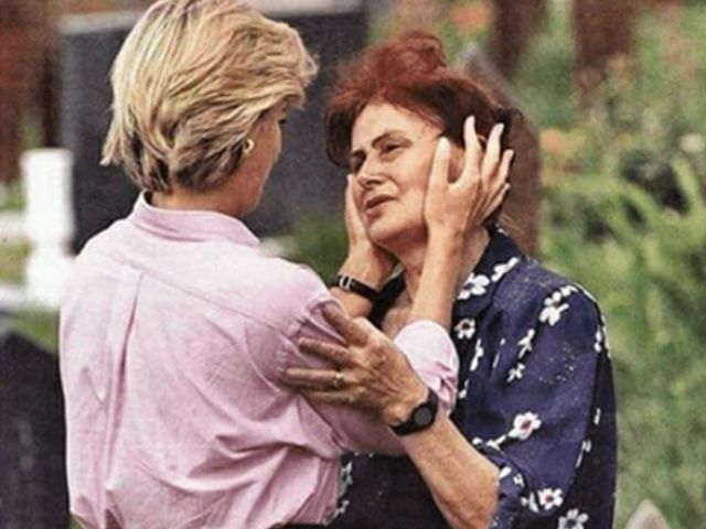 Lady Di en Bosnia consolando a una madre que perdió a su hijo por culpa de la guerra.