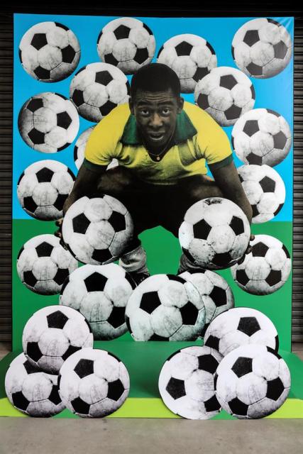 Fotografía de una de las obras de la exposición "Pelé 80 - El rey del fútbol", una exposición que hace un repaso a la biografía de Edson Arantes, desde sus orígenes humildes, pasando por los tres mundiales que ganó con Brasil, hasta su retirada en 1977.