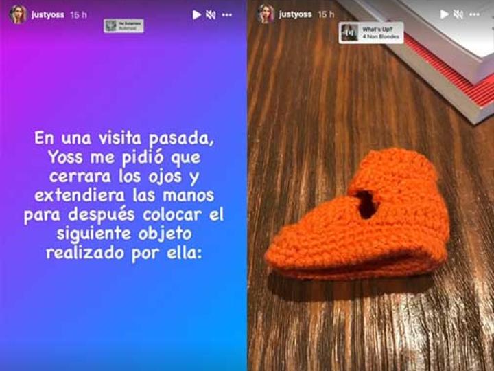 'En una visita pasada, Yoss me pidió que cerrara los ojos y extendiera las manos para después colocar el siguiente objeto realizado por ella', escribió el hombre, antes de poner la imagen de un zapatito de bebé tejido a mano.