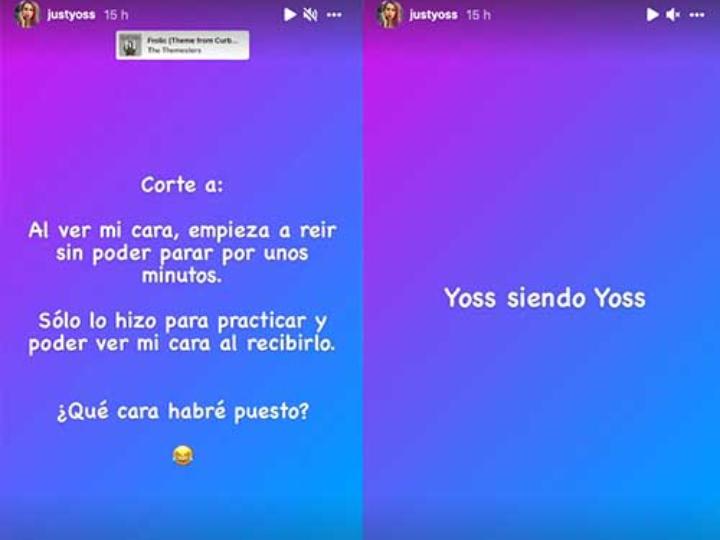 'Corte A: Al ver mi cara empieza a reír sin poder parar por unos minutos. Sólo lo hizo para practicar y poder ver mi cara al recibirlo, ¿Qué cara habré puesto?... Yoss, siendo Yoss', comentó.