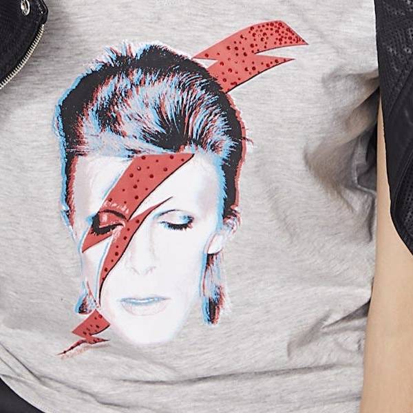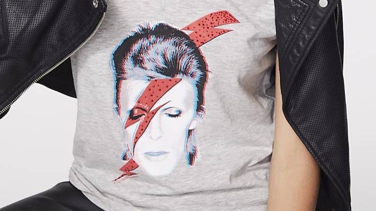 compañía francesa Ikks, que el año pasado compró el fondo LBO France, sacó una colección de camisetas de mujer con la que pretende llevar a los seguidores del cantante británico a los años ochenta y a “Let's Dance!”.