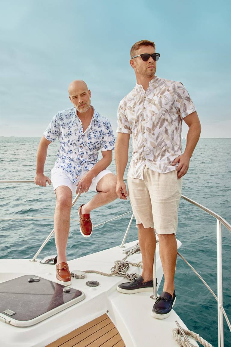 ● Para los hombres, las marcas H&O y H&O Trybu, traen pantalones cortos como shorts de gabardina, así como las bermudas clásicas en tonalidades de playa, como celeste y azul, y camisetas con tonalidades pasteles y estampadas que darán un toque fresco, casual y playeros a sus outfits. También, son infaltables las camisas resort que aportarán gran estilo.