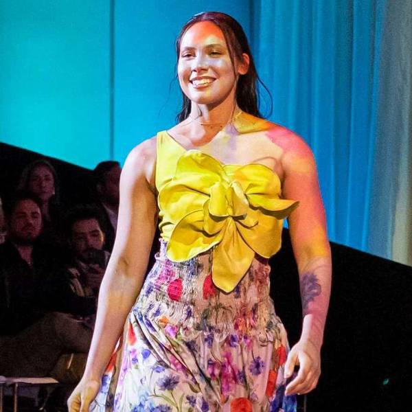 Buena energía, una vibrante paleta de colores, intrincados bordados florales en tres dimensiones, siluetas vaporosas, libres, llenas de tejidos suaves y naturales al cuerpo fue la propuesta de la creativa en la edición de Fashion Meet para Ecuador.