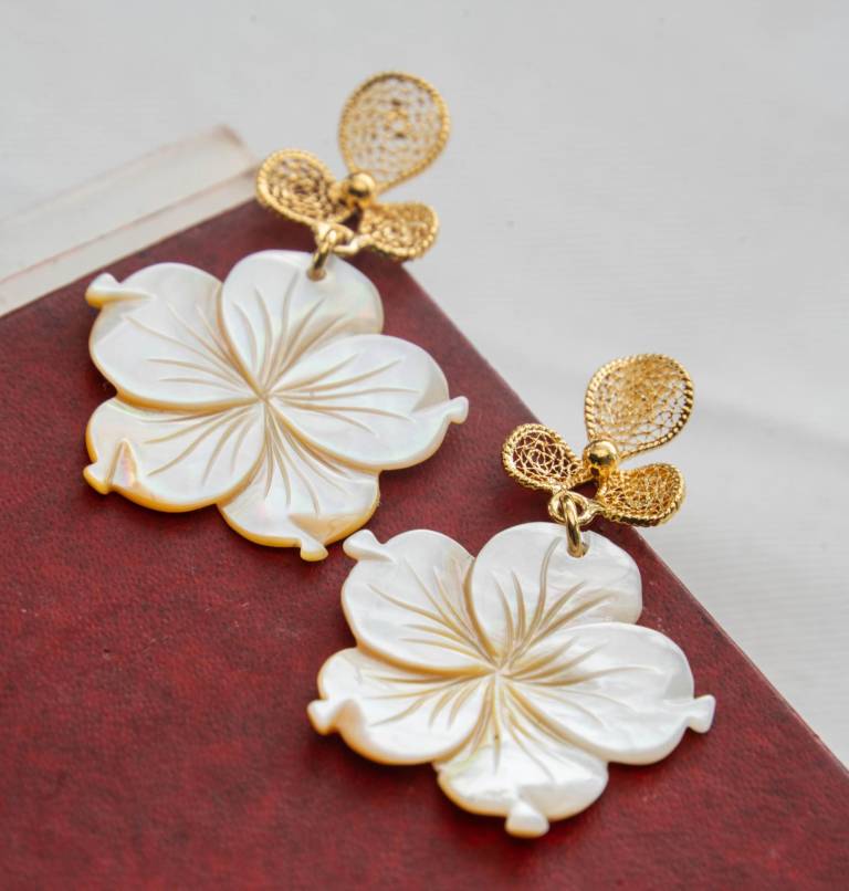 “Yo lo que más hago son flores: la flor completa significa la plenitud de la vida de una mujer, así lo tejen las artesanas otavaleñas en su ropa; cuando la flor está a la mitad representa que una mujer está casada”, nos cuenta sobre el tipo tejido que hace ya sea con plata u oro. También espirales y hojas son algunos de los diseños que se pueden ver en sus creaciones por lo que nos dice “yo te cuento historias a través de mi joyería”, por lo que también nos dice que lo asocia con arte.