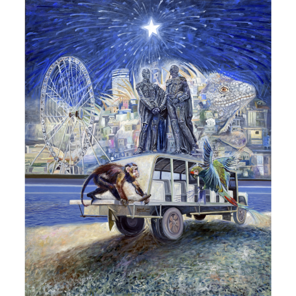Los próceres junto al pueblo desde el balcón de la casa de Villamil. Obra: Luis Peñaherrera