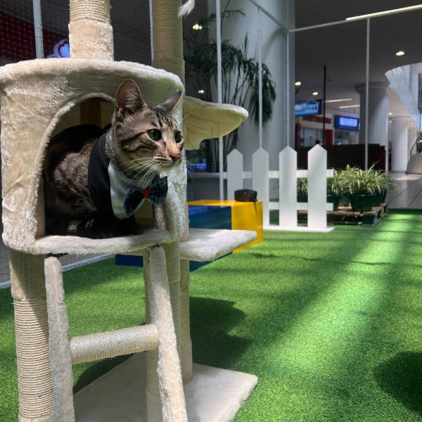 El parque también incluye actividades para gatos, algo que no se había visto antes en este tipo de instalaciones dentro de la ciudad.