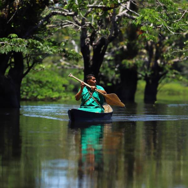 Entrar a este lugar es casi como entrar a un cuento, a un lugar que ha permanecido intacto durante miles de años, son dos horas en canoa las que se debe navegar para llegar a uno de los lodges en el cual se alojarán, pero este, no es un simple recorrido en canoa, apenas uno se embarca, no necesita tener mucha suerte para empezar a ver los monos ardilla saltando de un árbol al siguiente que está en la otra orilla, literal vuelan por encima de uno.