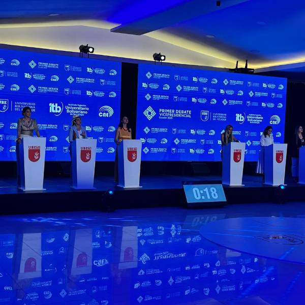 El debate, organizado por la Universidad Bolivariana del Ecuador (UBE), estaba programado para las 19:00, pero comenzó pasadas las 19:30.